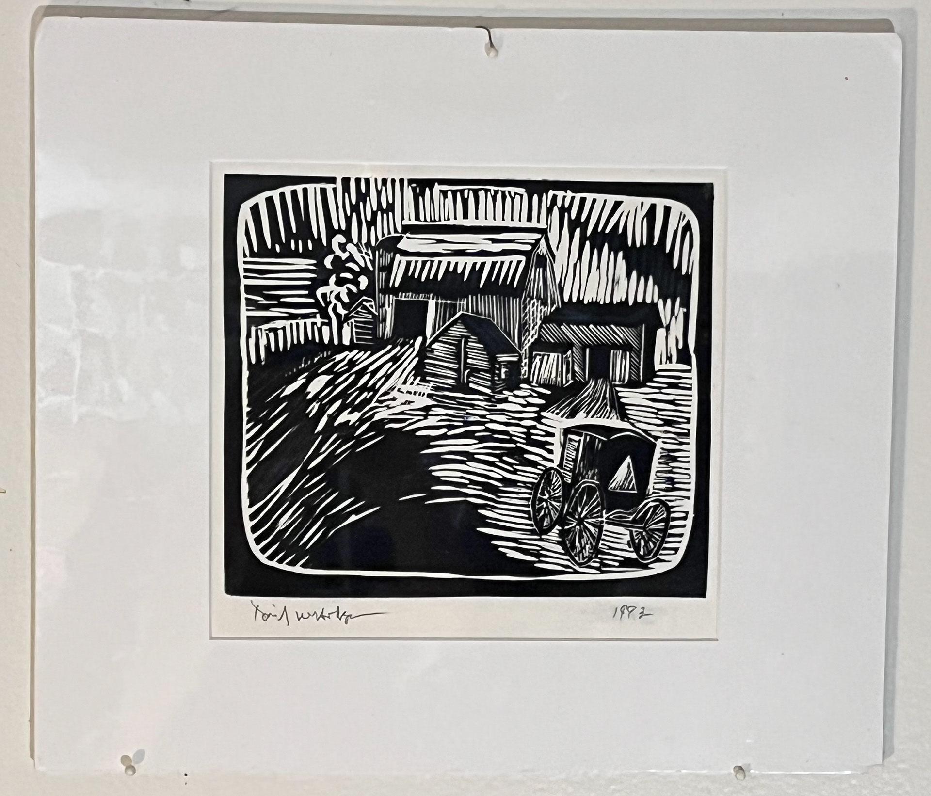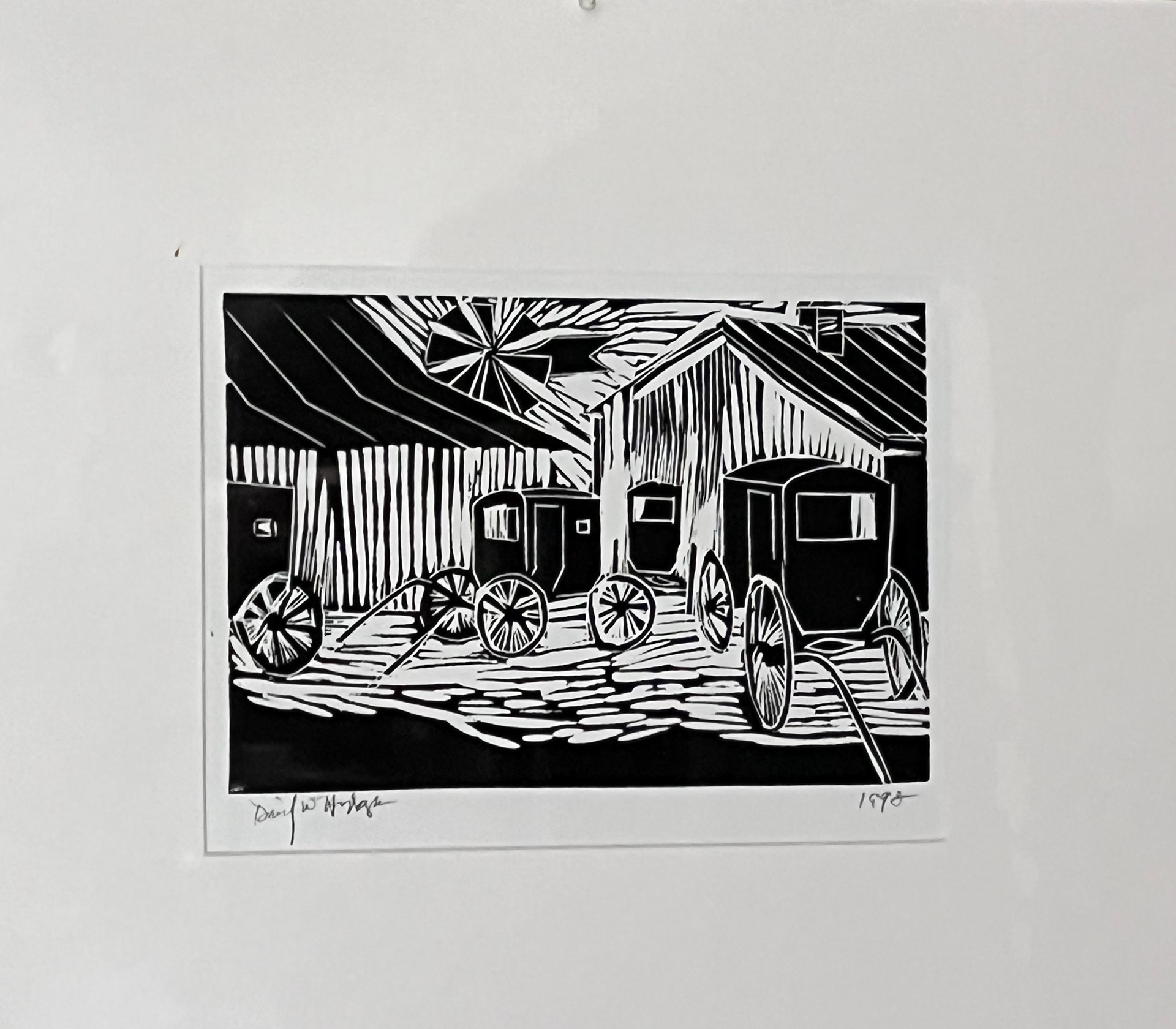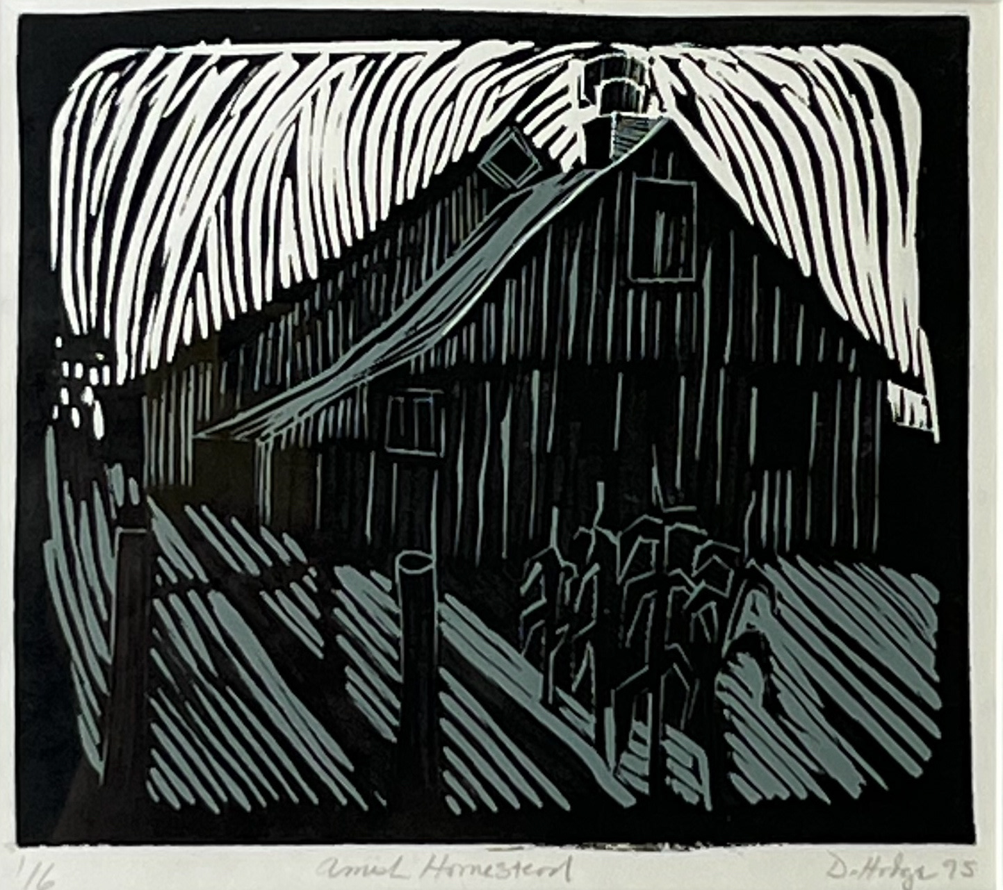 (below) In the 1990's, David Hodge created this graphite drawing and an extensive series of block prints of Amish farms and homesteads.