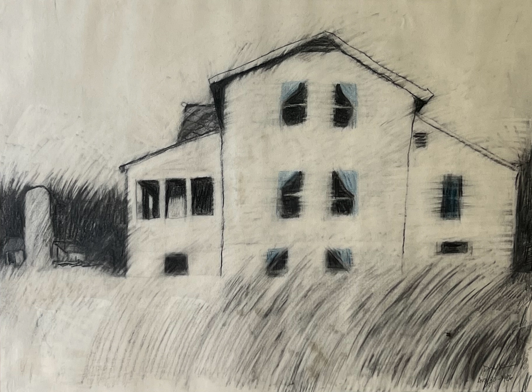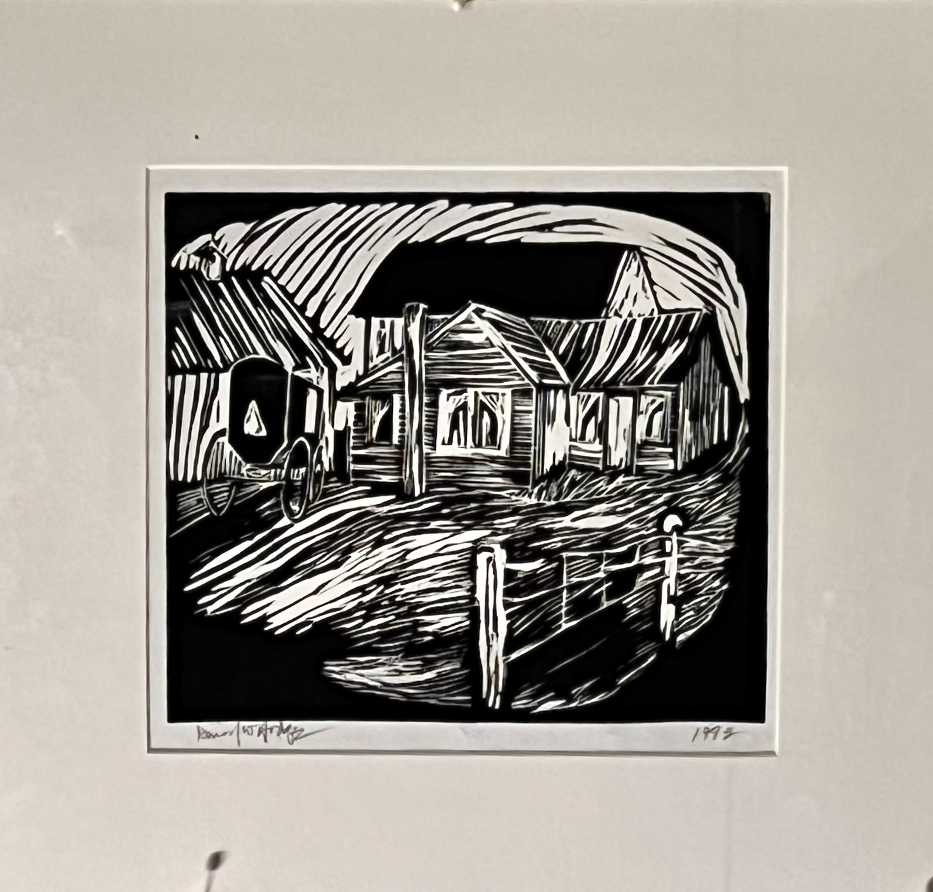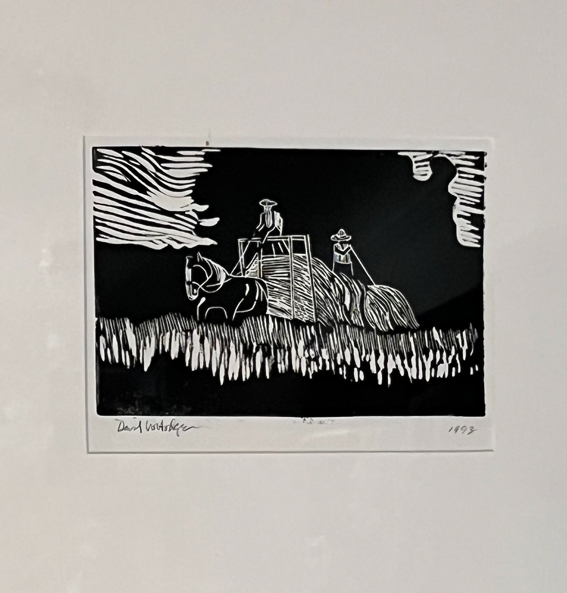 (below) In the 1990's, David Hodge created this graphite drawing and an extensive series of block prints of Amish farms and homesteads.