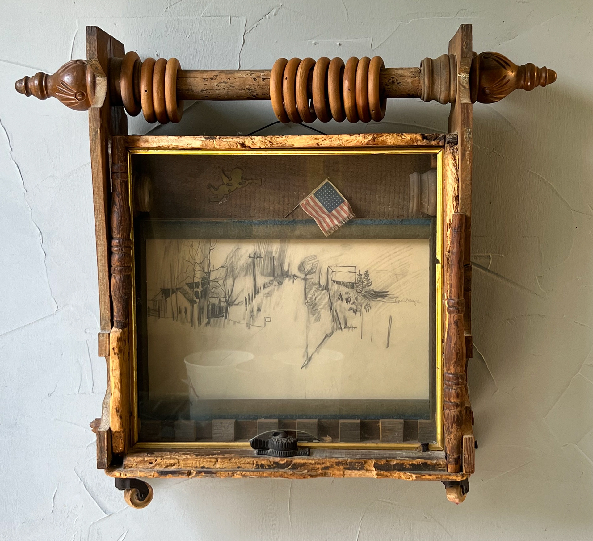(below) Nostalgic Window Box, drawing and assemblage, 1968