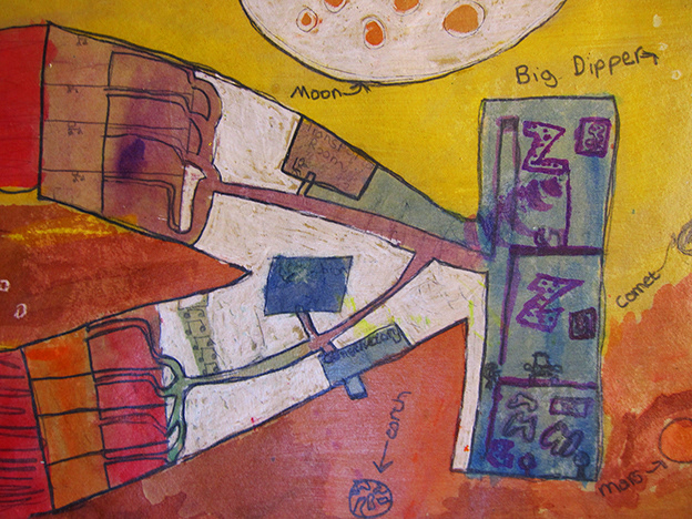 The works of David Hodge's students are as diverse as the students themselves. As his student, Magda Krance, said, "We were exceptionally lucky to have David Hodge as our art teacher. His art classes were pure creative play and discovery of our expressive abilities. We felt fully supported, loved, and seen in that magical space." In 1970, artworks by Hodge students were displayed in the Milwaukee Art Center. David F. Wagner of the Appleton Post-Crescent, in his article, “Graphics, Decoys, Children’s Art Share Milwaukee Art Center Stage,” wrote: “The incredible energy and natural talent of these youngsters has been brought out beautifully, which is a tribute to the excellent teaching of David Hodge, their mentor.” Wagner continues, “Frankly, their work would put many an adult art community to shame. It is a show which could hang in almost any gallery and look good. Most are astounded at the quality and impressed by the students’ boldness. It may be a little side trip for the Art Center, but for many viewers it is a reassuring exhibit. At least in one place and on one level, the future of student art is in competent hands.” Indeed, David designed an artful play space with great intention as the springboard for inspired assignments that often integrated the students themselves as subject matter. Here is just a small sampling of the works created by the students of David Hodge.