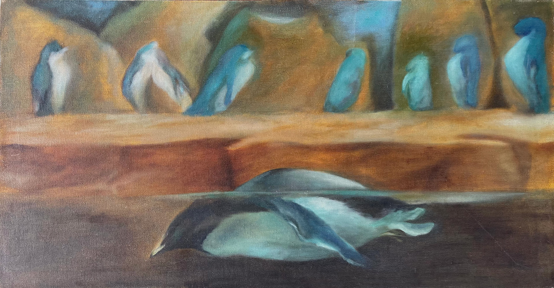 (below) Red Boat on Still Waters, encaustic on wood panel, 2022