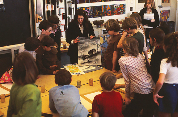 (below right) Once a year, the Hodge art room transformed into a gallery where student works of all levels were treated as respectfully as any art gallery treats adult artists' works. This further instilled the idea that all students were creative and that their artistic voices were important.